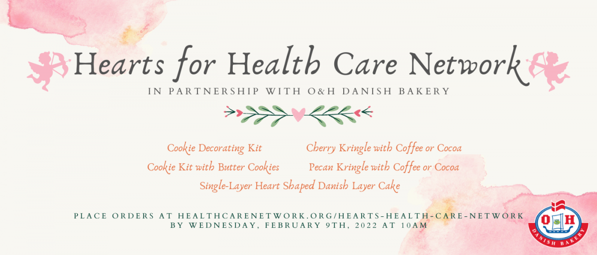 We were proud to partner with O & H Danish Bakery to add some delicious fun to celebrate Valentine’s Day. We offered a heart shaped cookie decorating kit, some yummies to munch while decorating, and/or a Kringle and Coffee/Hot Chocolate combo. Your participation provided critical support to HCN, an important piece of our community’s health care.